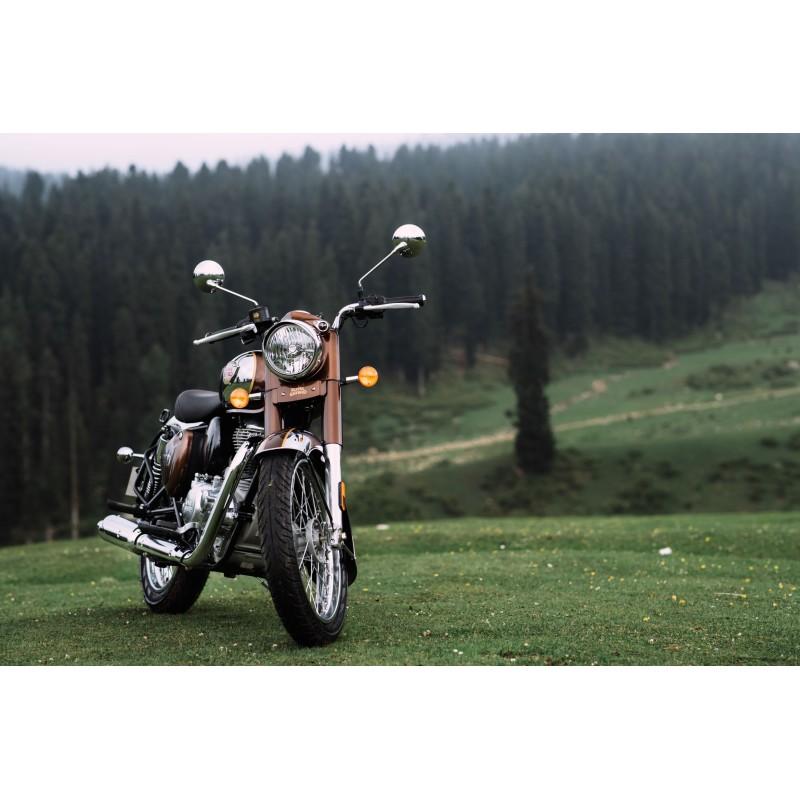 • Stijl: De Classic 350 behoudt een authentieke, retro-esthetiek met kenmerkende elementen zoals de ronde koplamp, gewelfde spatborden en een diepe uitlaatnoot.